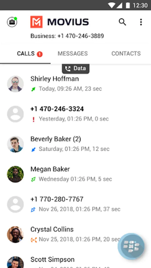 Movius for BlackBerry® is fully integrated with the BlackBerry Dynamics Android SDK and provides policy control for Enterprise IT Administrators. Movius for BlackBerry allows Click-to-dial and Click-to-message functionality for phone numbers appearing in any BlackBerry Dynamics Container Apps such as BlackBerry Work, BlackBerry Access or other third-party Apps.