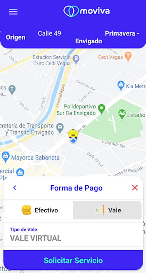 Moviva is the safest application to request a taxi in the city of Medellin and its metropolitan area. Totally free application that is supported by a real taxi company with more than 40 years of existence.