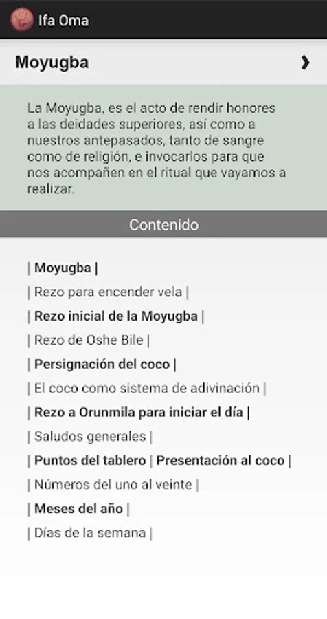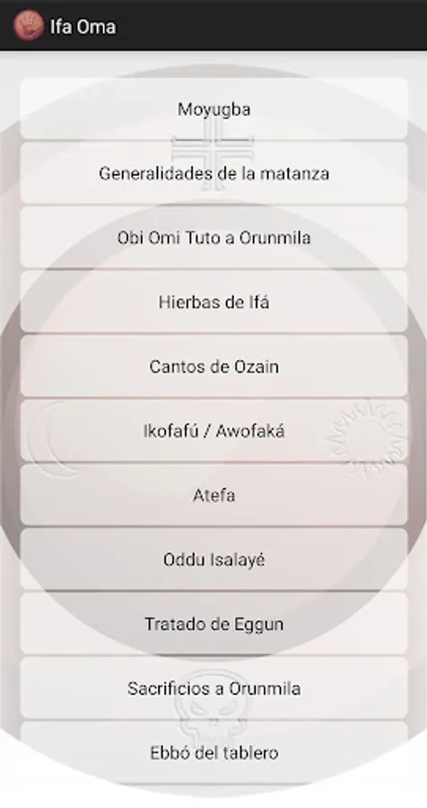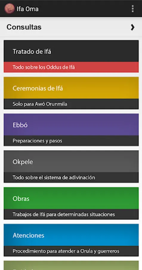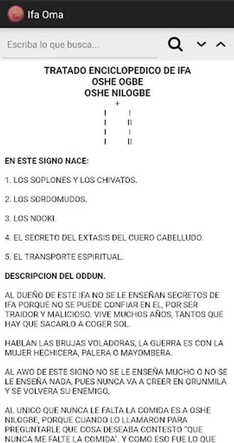 Application that aims to share a kind of guide for the study of Ifá. The information presented comes from thousands of volumes belonging to the personal library of the group of Cuban babalawos authors of this idea.