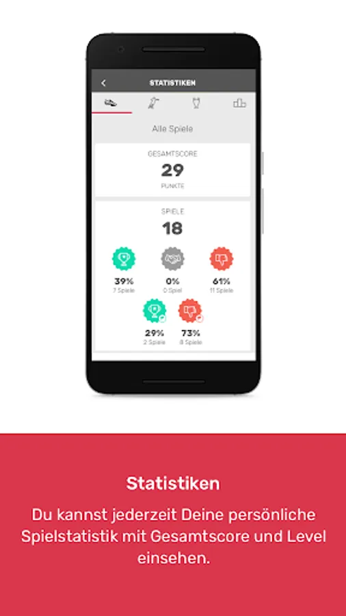 - Statistiken: Du kannst jederzeit Deine persönliche Spielstatistik mit Gesamtscore und Level einsehen