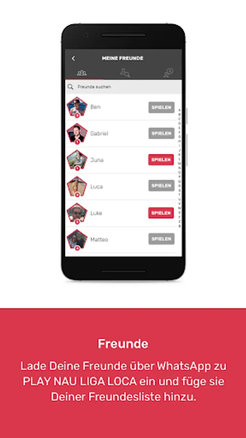 - Freunde: Lade Deine Freunde über Whatsapp zu PLAY NAU LIGA LOCA einund füge sie Deiner Freundesliste hinzu
