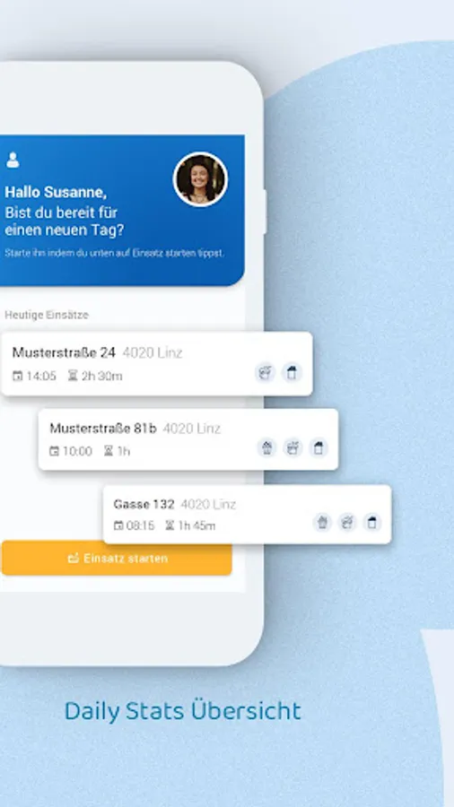 Check in via NFC tag, clean, mark the edited categories, check out - done. The combination of a smartphone app and stationary NFC tags enables precise time recording for your staff and their activities. The feedback options provided by residents provide honest and neutral quality control.