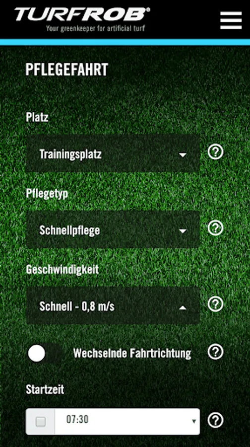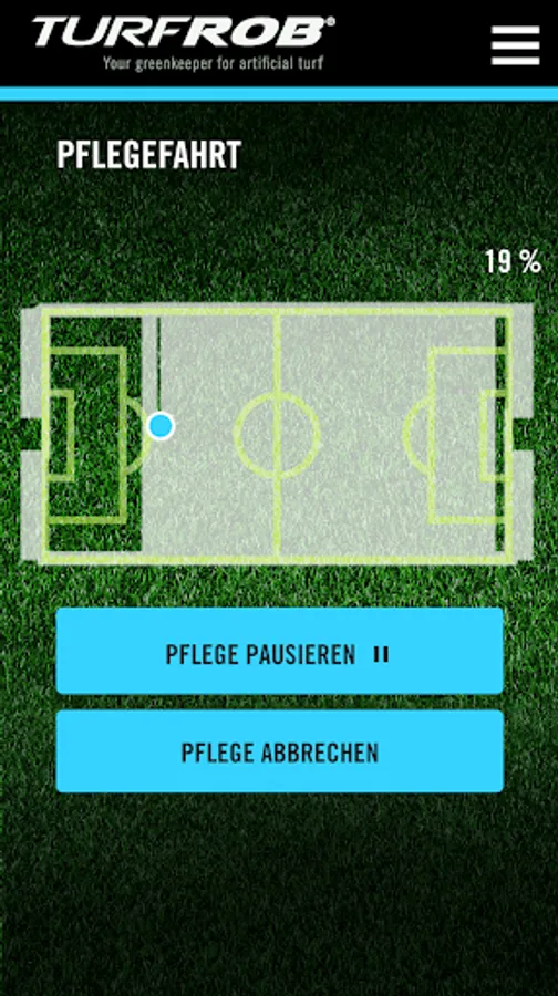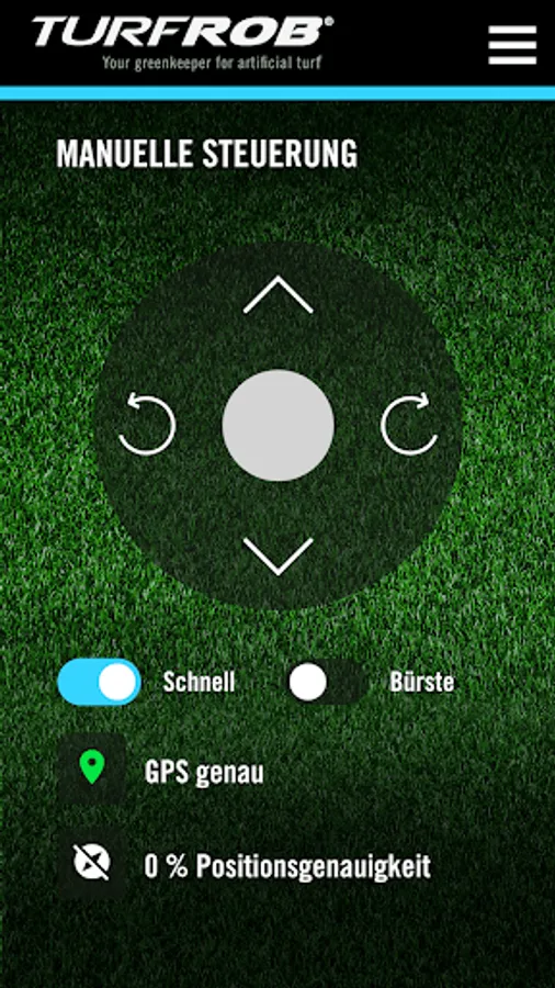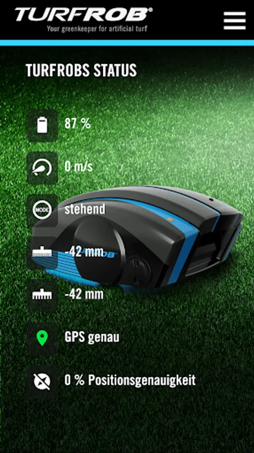With this app you can access the functions of the TurfRob. The TurfRob App has a display of the current status, the configuration and representation of a maintenance run, as well as manual control.