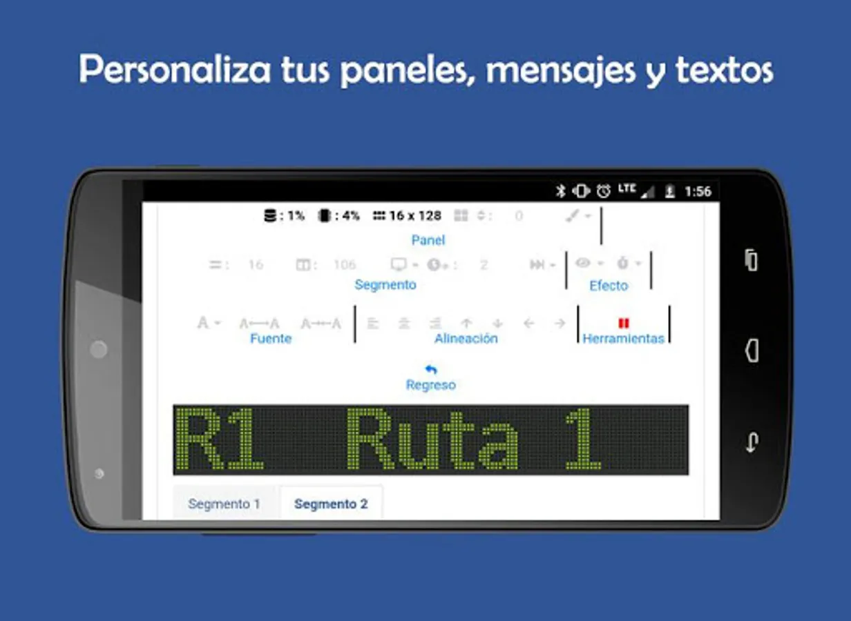 PRESENTATION OF MESSAGES: Add the speed and effects of how you want to visualize your messages, create up to 4 different segments in the same message, and give a unique point of attention to the itineraries.