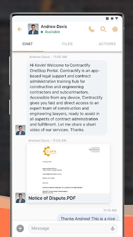 Accessible from your mobile device or desktop, Contractify gives you fast and direct access to an expert team of construction and engineering lawyers who are ready to assist you in all aspects of contract administration and fulfillment.