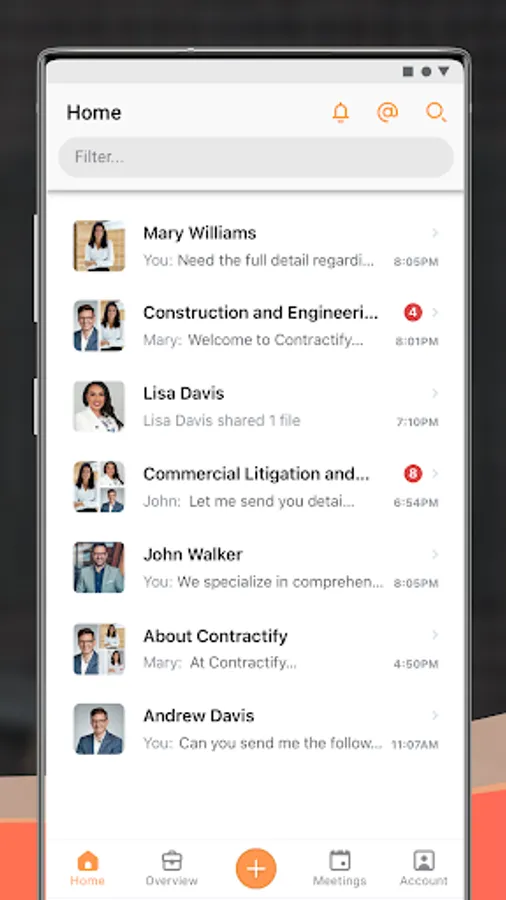Use the Contractify app to interact with our team. Features such as document sharing, contract e-signature capabilities, task management, and more enable streamlined support from end to end.