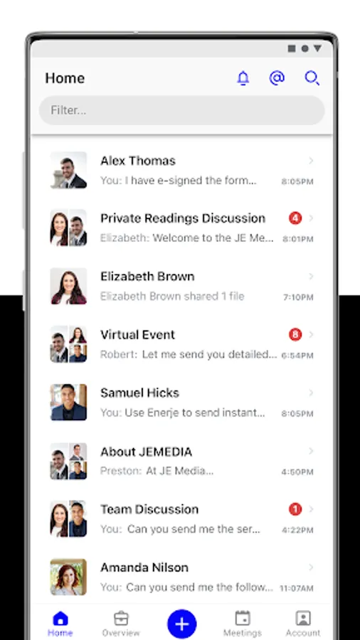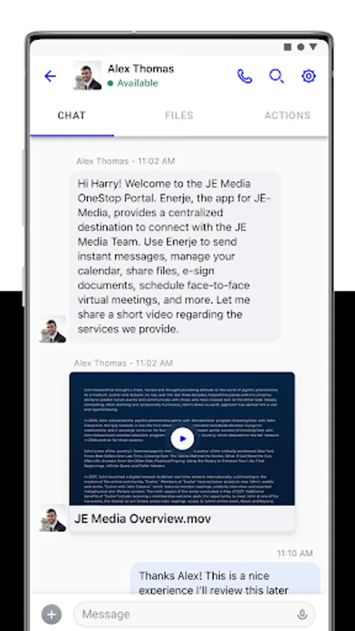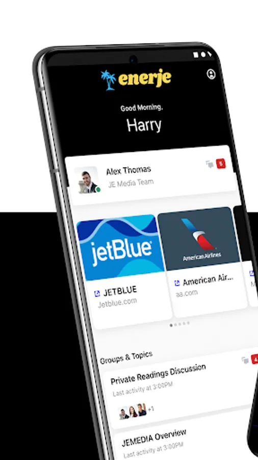 Enerje, the app for JE-Media, provides a centralized destination to connect with the JE Media Team. Use Enerje to send instant messages, manage your calendar, share files, e-sign documents, schedule face-to-face virtual meetings, and more.