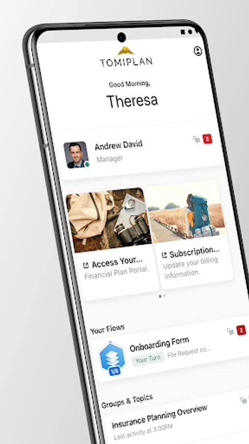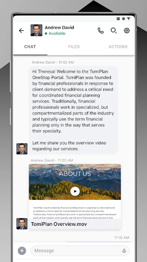 TomiPlan's team of experts is here to help you succeed. Our app supports messaging, video calling, document sharing, file management, and more — providing a seamless experience from your mobile device.