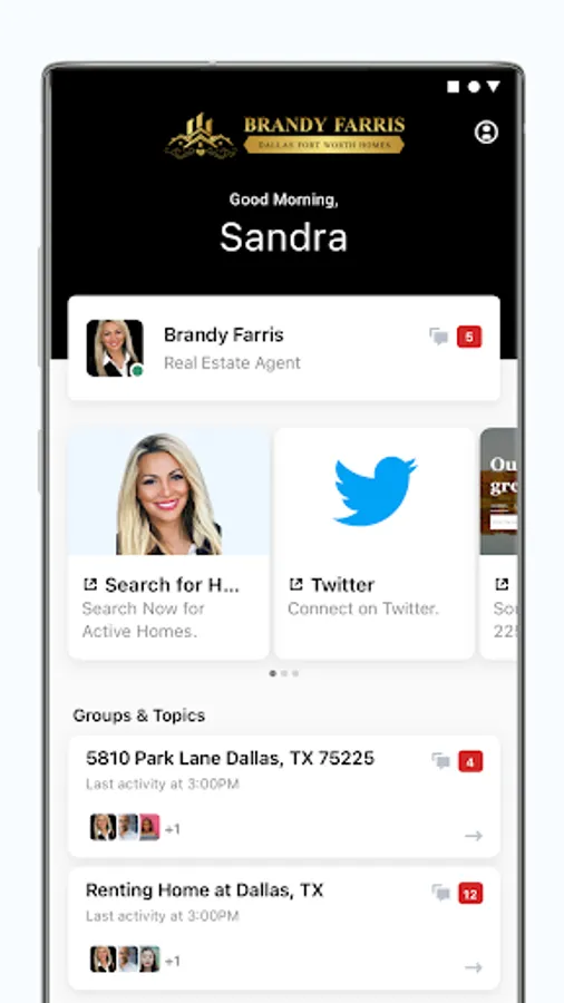Brandy Farris is a top realtor in Texas, specializing in the Dallas-Fort Worth area. The Dallas Fort Worth Area Homes app streamlines the home buying process, and enables clients to receive real-time updates on the latest listings in the neighborhood.
