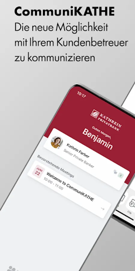 CommuniKATE by Kathrein Privatbank is the new way for you to securely connect and communicate with your dedicated Relationship Manager at a time and place that is convenient to you. CommuniKATE is the place where from today on you can talk to your bank, exchange documents, make audio or video calls and share screens. You can also go back to previous conversations and exchanged documents at any time.