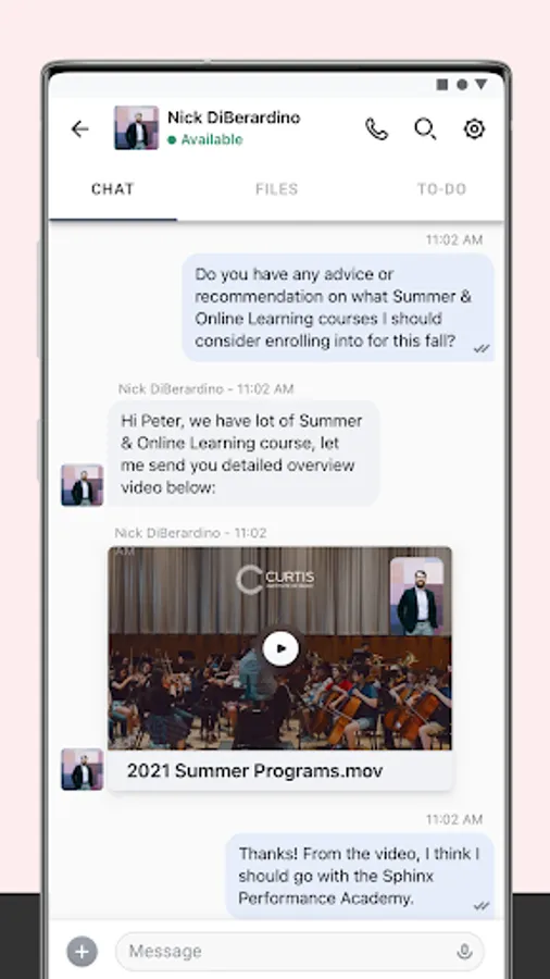 - Share video and audio clips with peers and mentors via text, voice, and video messaging
