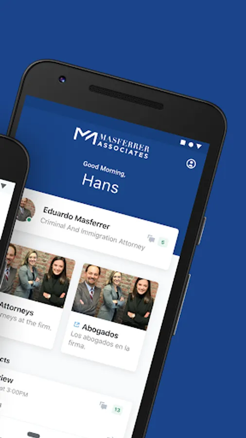 Masferrer & Associates is a dedicated, determined and cutting-edge firm. We believe that all people—regardless of their income level, ethnicity, race, or sexual orientation—deserve compassionate, zealous, and dedicated counsel. Our dedicated team approaches each case with empathy, passion, and an unwavering commitment to our clients. Seeing beyond courtrooms and records, we focus on the people we’re representing, and provide nothing short of elite representation. We aim to devote our full resources to understanding our clients’ individual needs to help them achieve their desired outcomes. We are proud to be a multi-cultural and bilingual firm. Connect with us on your case with the Masferrer app - a secure and encrypted digital platform for our legal services: