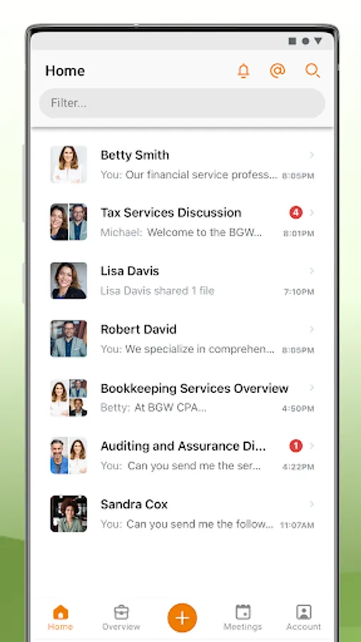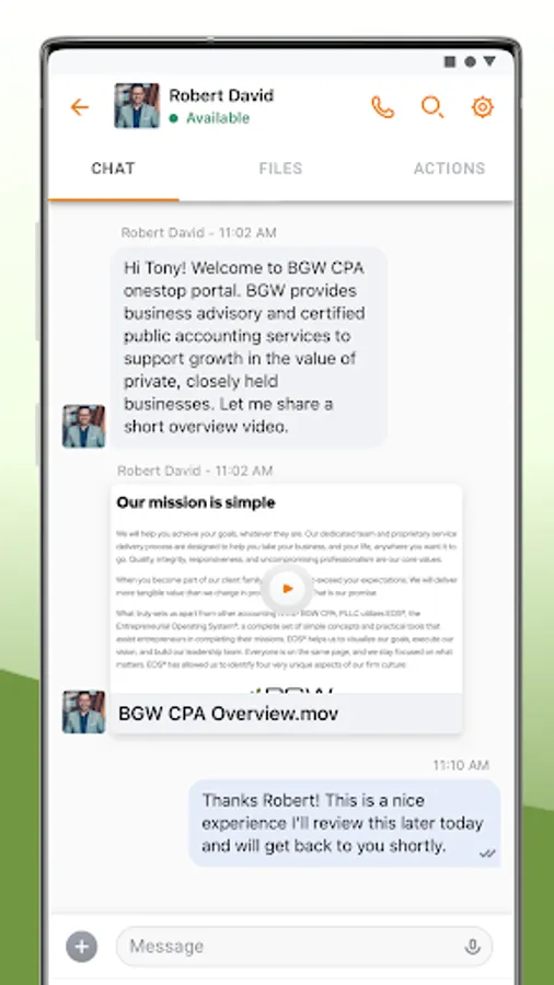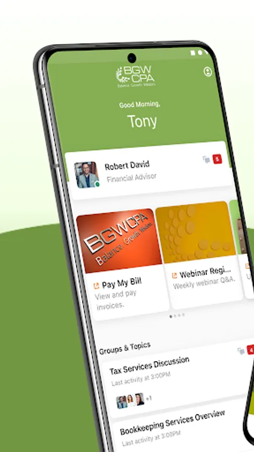 BGWnow is your one-stop platform for improving your experience with BGW. Receive on-demand access to our team, respond to requests for information, access your account, and be the first to know about events, experiences, and information. With interactive features like secure chat, document sharing, video meetings, e-signature, and more, BGWnow provides a seamless service experience.