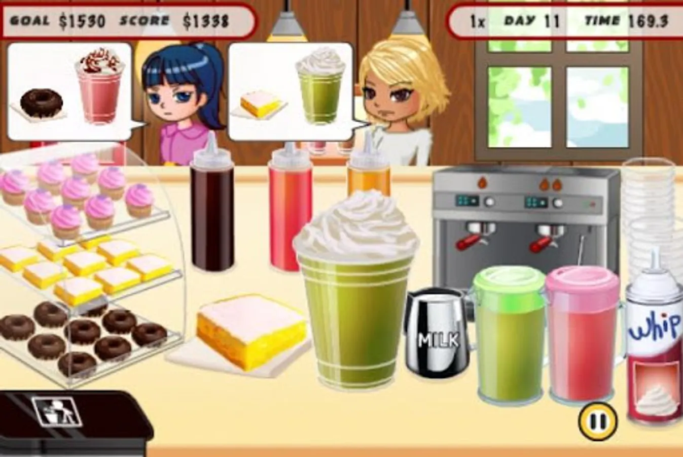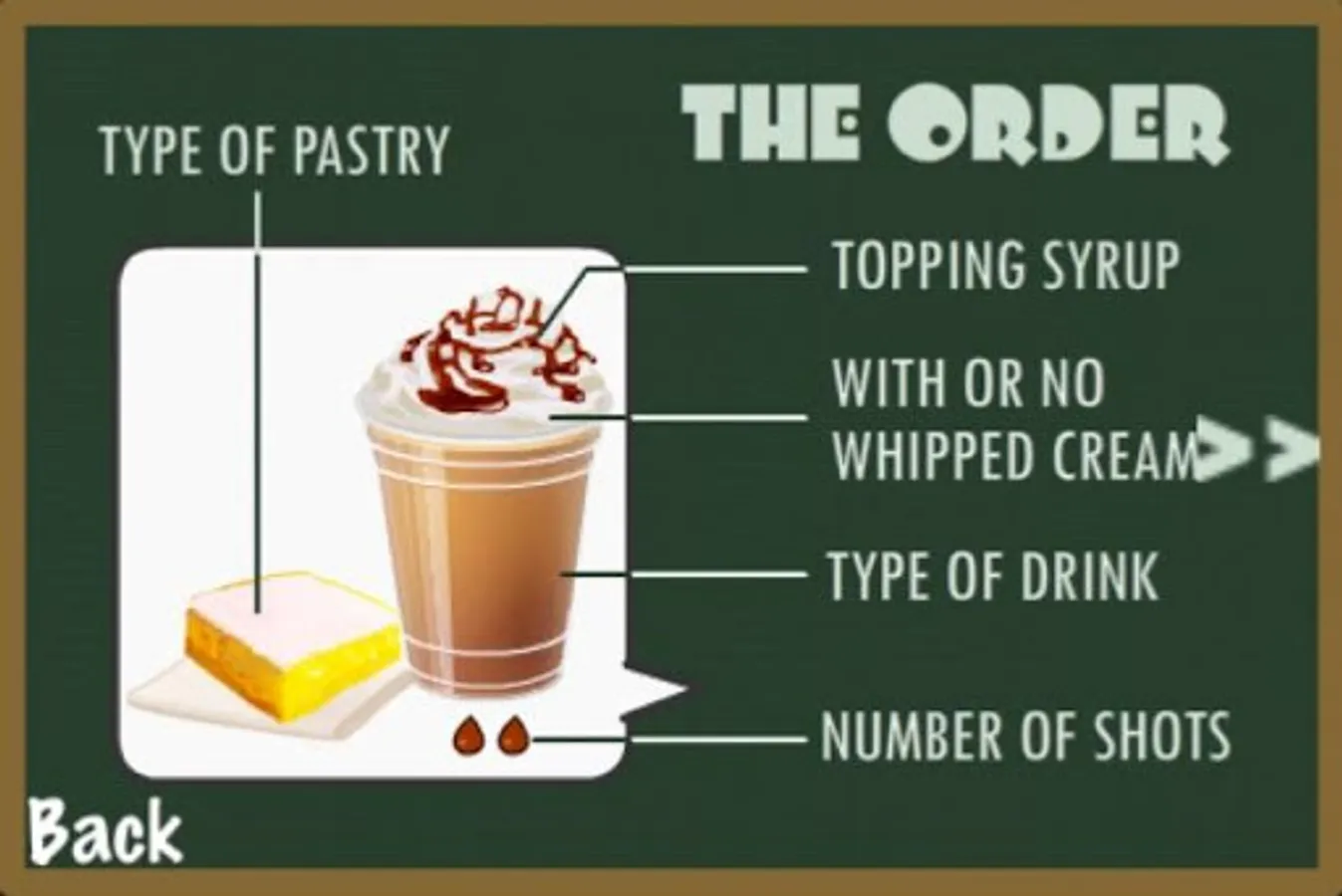 HOW TO PLAY: The tutorial is available under the "ABOUT" section on the menu but we also included screenshots here. :) Basically, you start out with a cup. Check out the customer's order type for the drink. Click for one or two drips for coffee (with or without milk) and other types of drinks like green tea or strawberry ice blends. Add the whipped cream and syrup if the customer asks for it. Some customers will want a treat from the bakery, too! Finally, use your finger to slide the order to the customer. If you mess up, no problem! Just tap on the bottom left rubbish bin to throw away your drink and start over.