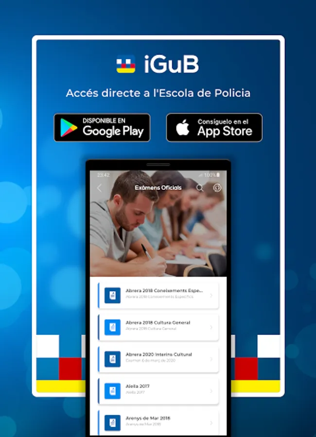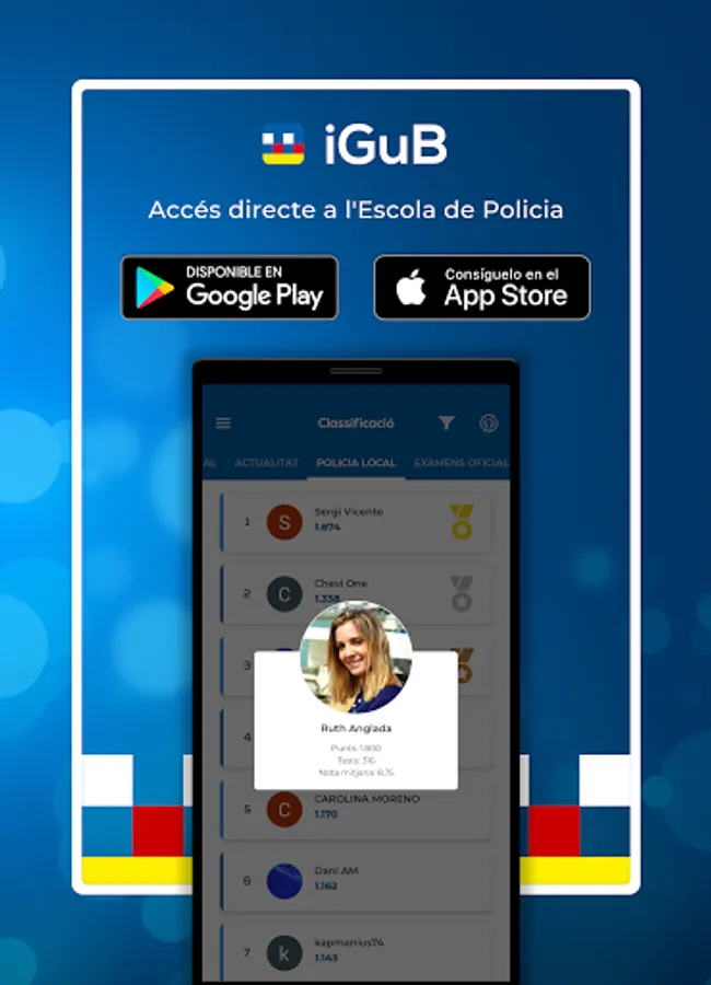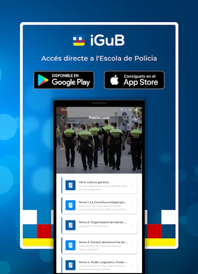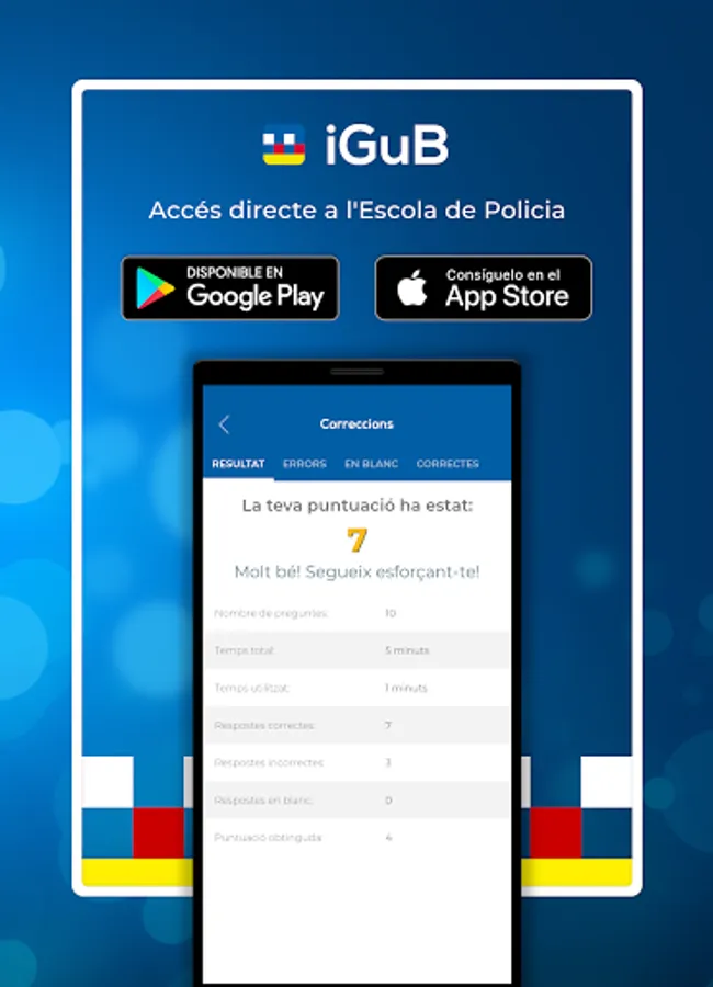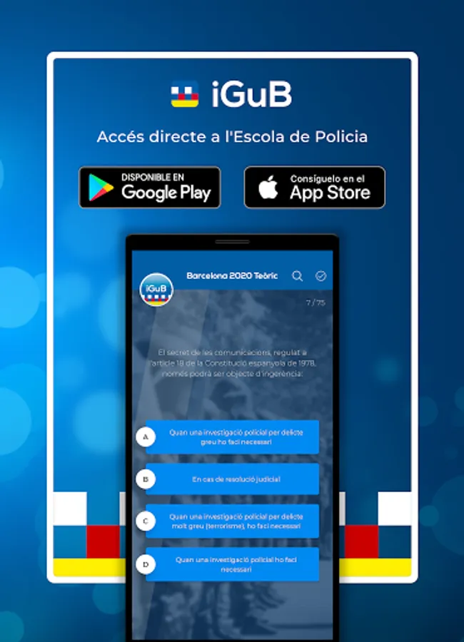 Download iGuB and place yourself among the best in the cultural and syllabus exam of your opposition to Guàrdia Urbana de Barcelona, with our mock multiple choice exams application.