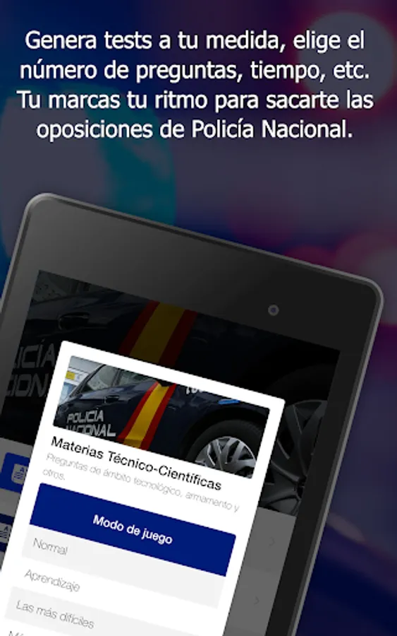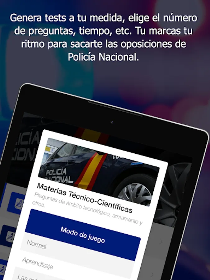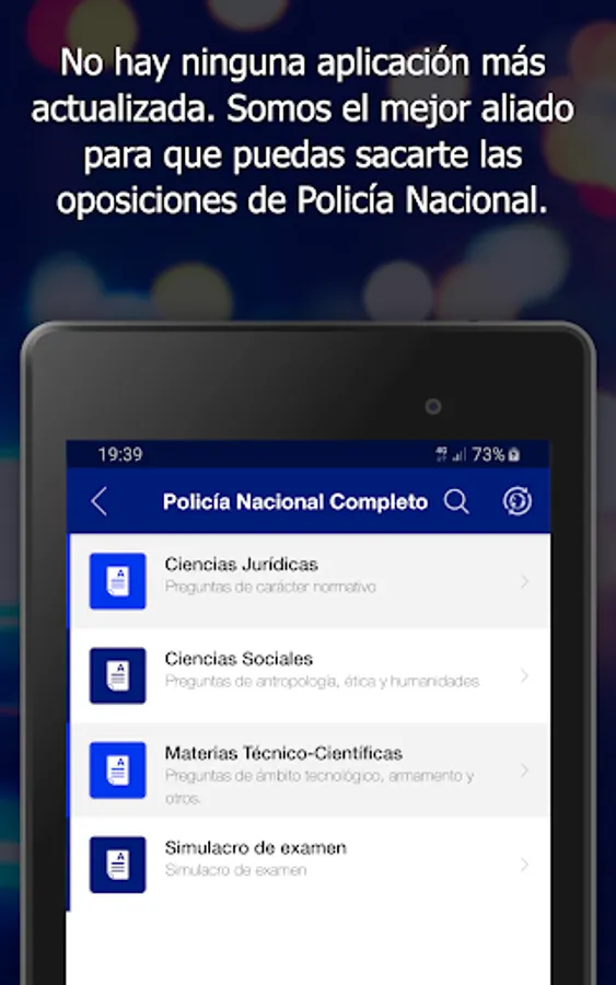 The app that will help you prepare your opposition to the National Police in a dynamic and simple way. You can practice what you have studied anywhere and at any time.