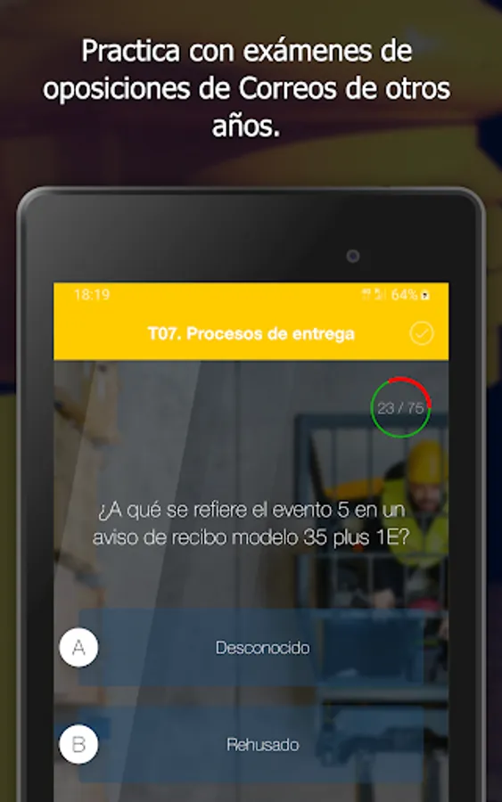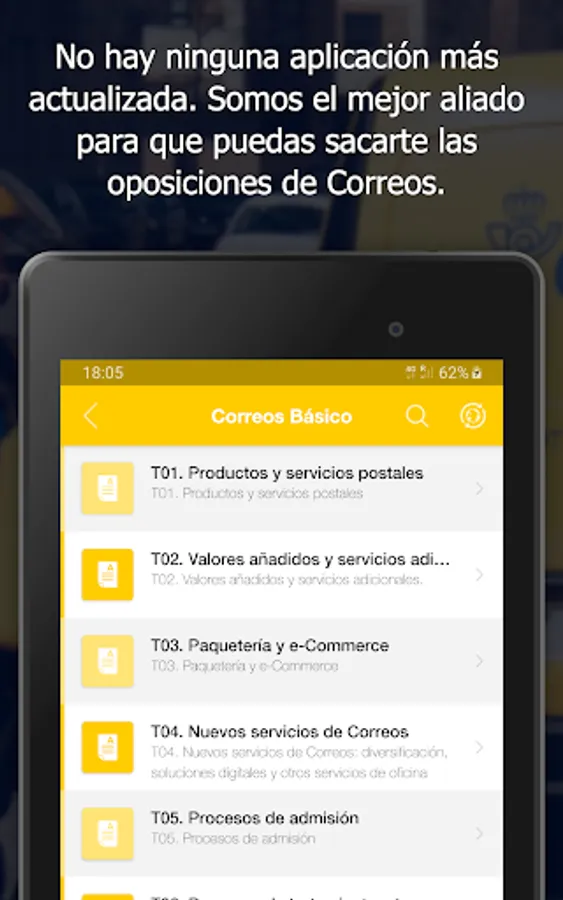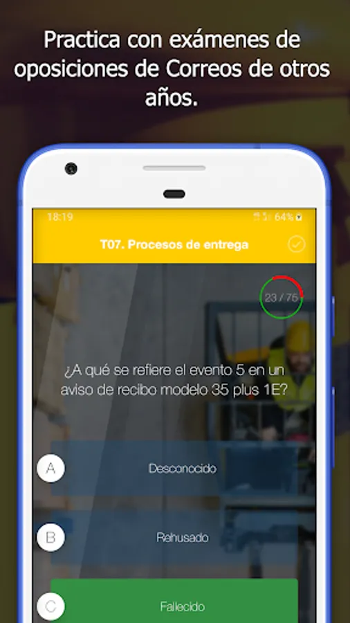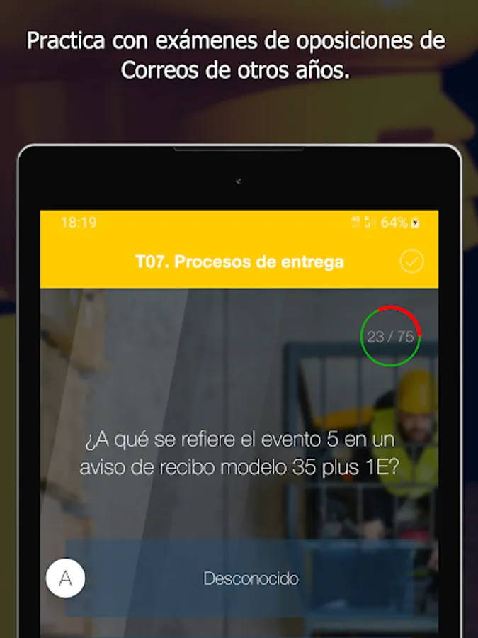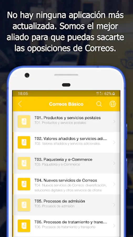 The app that will help you prepare your job consolidation at Correos in a dynamic and simple way. You will be able to practice what you have studied anywhere and at any time.