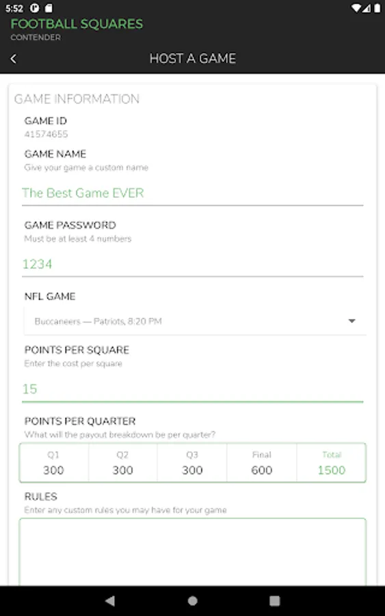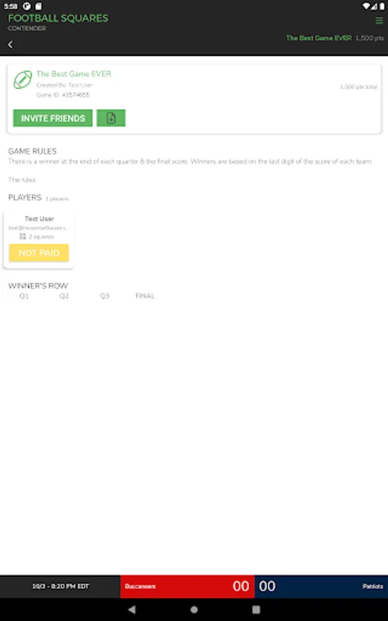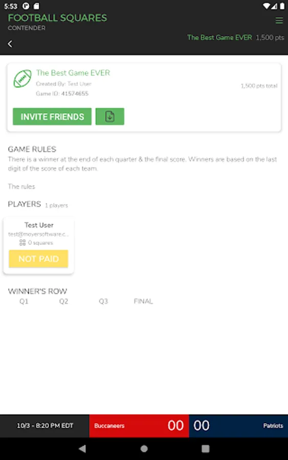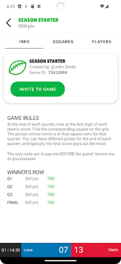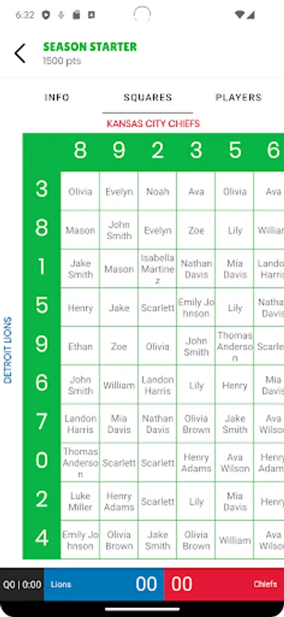 🏆 As the game progresses, feel the adrenaline surge as the squares fill up. Will your lucky numbers come through? The app lets you follow every play, every touchdown, and every thrilling twist as the game score updates in real-time. Who will reign supreme in each quarter? Squares has the answers!