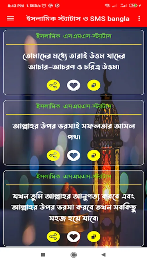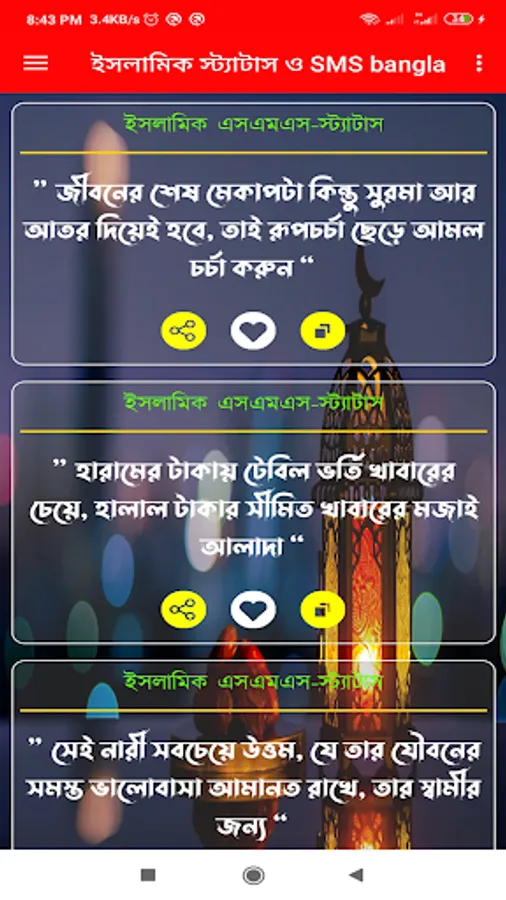 But I am telling you dear friend that I have added Islamic status to this app. Which is the status that created a stir all over the world. In this list of innovative Islamic statuses, you will find coded statuses from Ayat Hadiths, acceptable opinions of Sahabi, followers, special comments of famous Islamic scholars and prominent scholars, which are recognized as Islamic statuses and are popular and acceptable to everyone. So you can use the Islamic statuses given in this app without any problem.