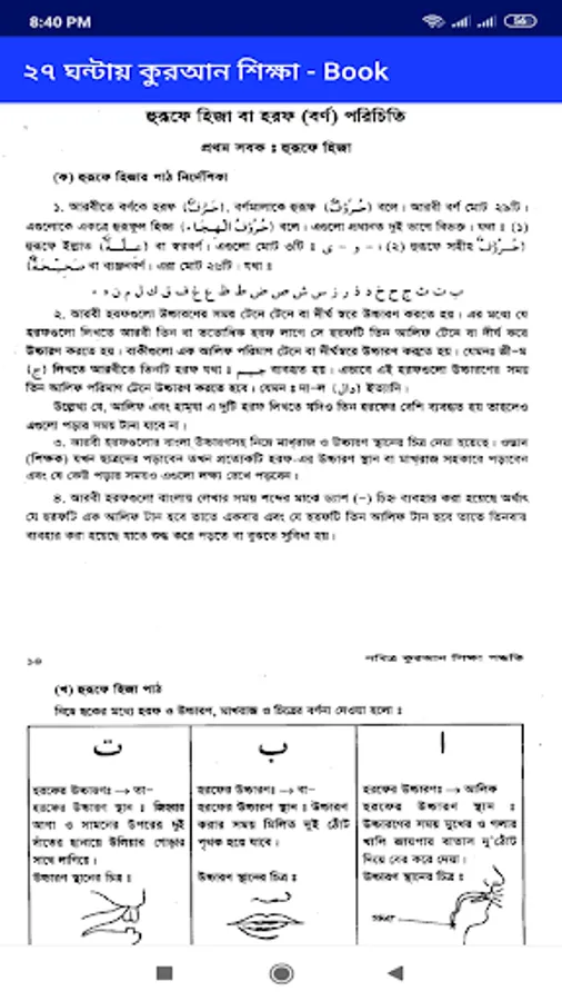 The Holy Prophet (PBUH) said, "The best among you is the one who learns the Qur'an himself and teaches it to others." This app has detailed discussion about pronunciation of Quran in simple manner in just 27 hours.