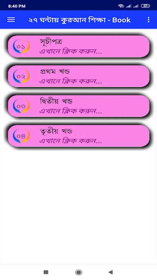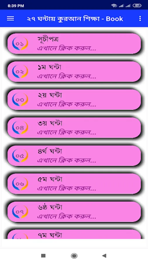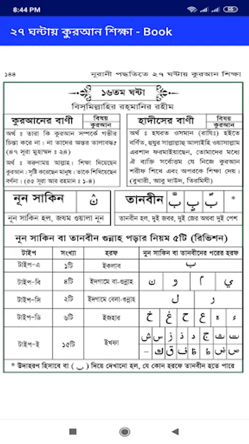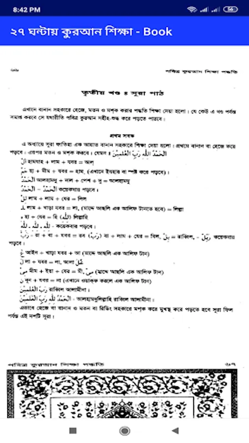 Below each Arabic text, the Bengali pronunciation is given. There are plenty of blanks to fill. You can use the app as an account. There are tests after every hour of reading. As a result, you can understand by yourself whether you have learned to read in that hour or not. So read a little for an hour every day. Then you will see that you can learn to read Quran Sharif in just seven days, InshAllah. No more talk. Let's start by saying Bismillah.