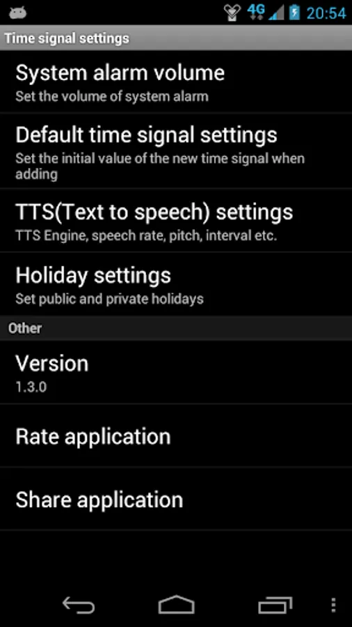 Support syetem TTS(Text to speech) engine. Not only time signal sound that pre-installed, also can read the time and any input text by voice .