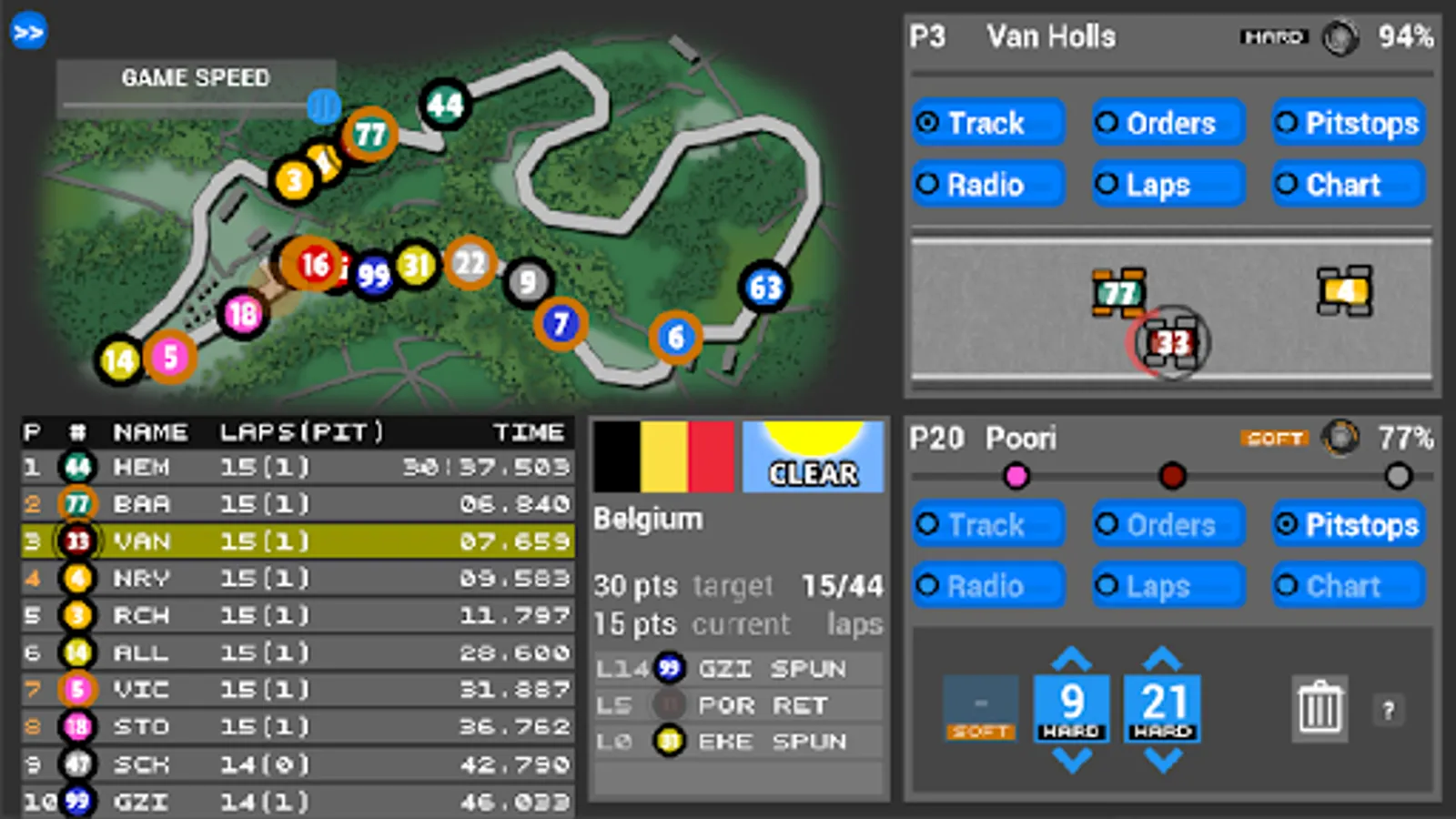 * Manage your accounts, upgrade your car, invest in Research and Development