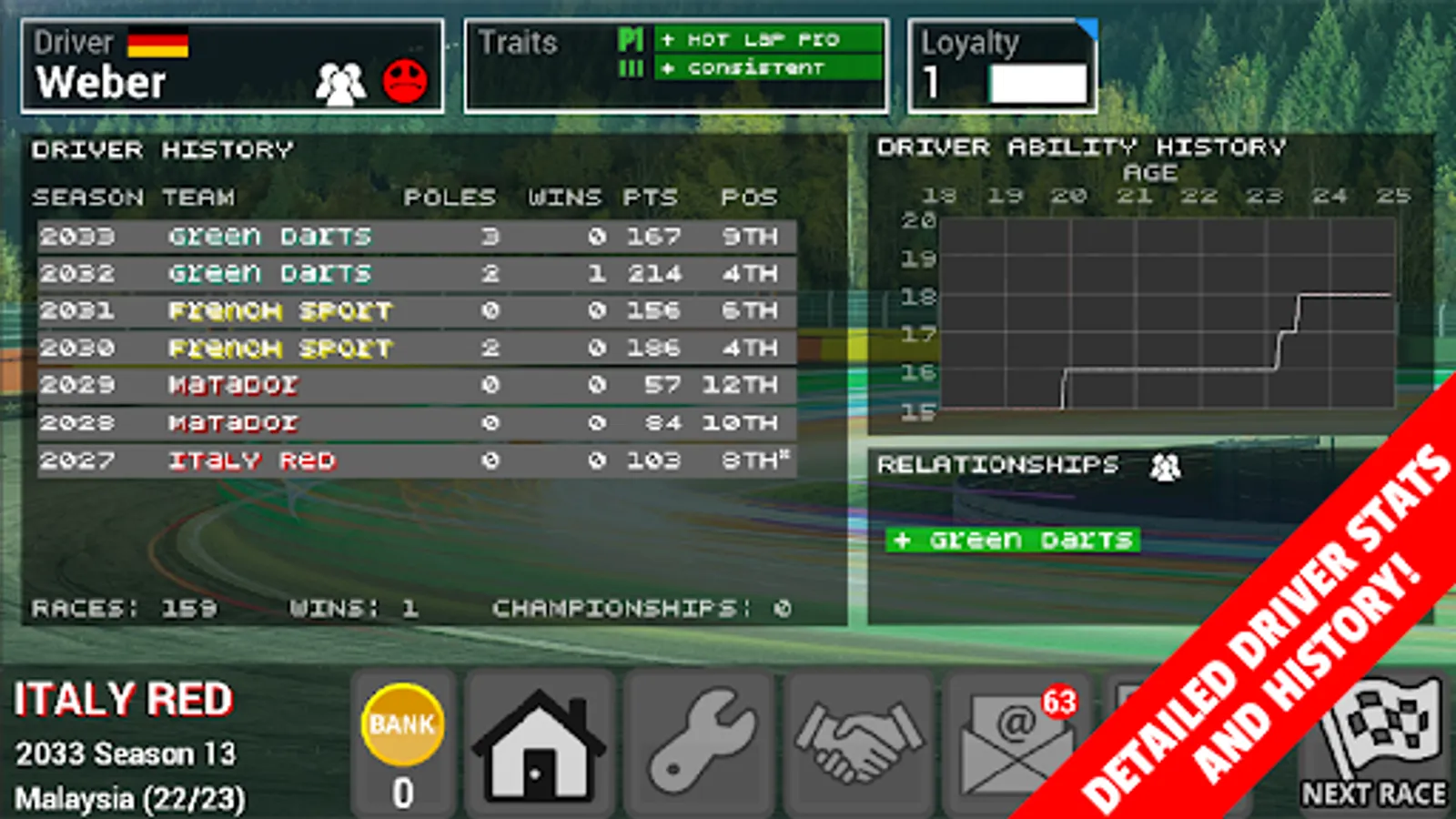 * Establish positive and negative driver relationships to build your legacy (Pro Only)