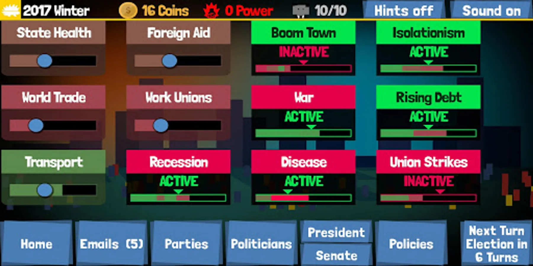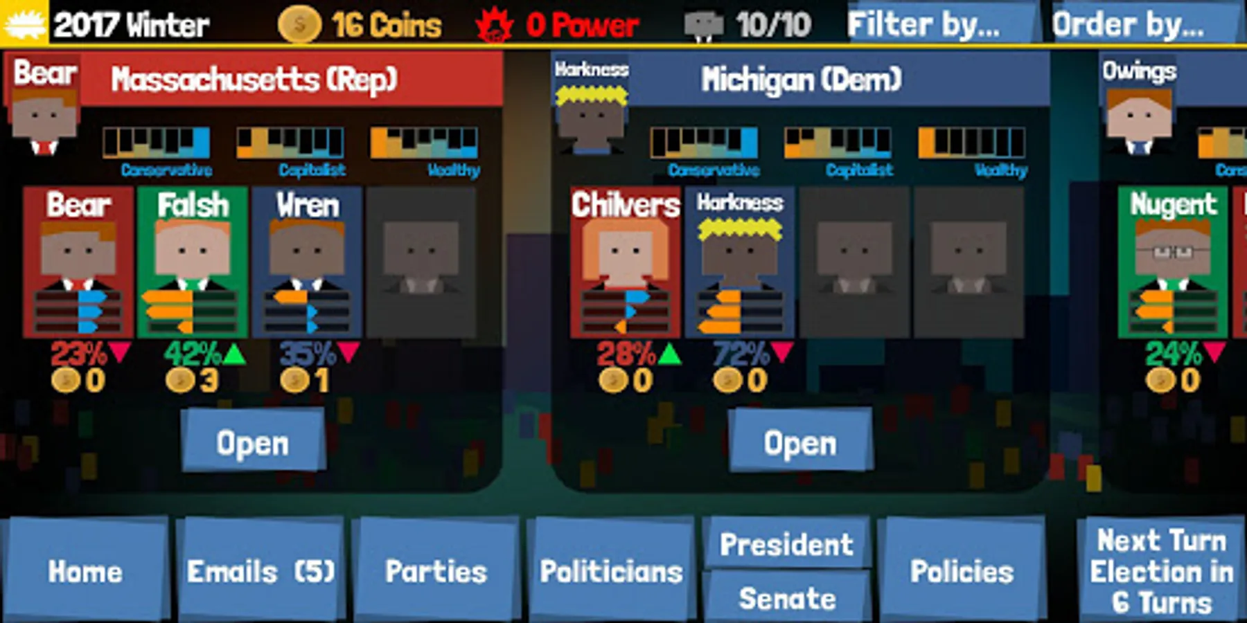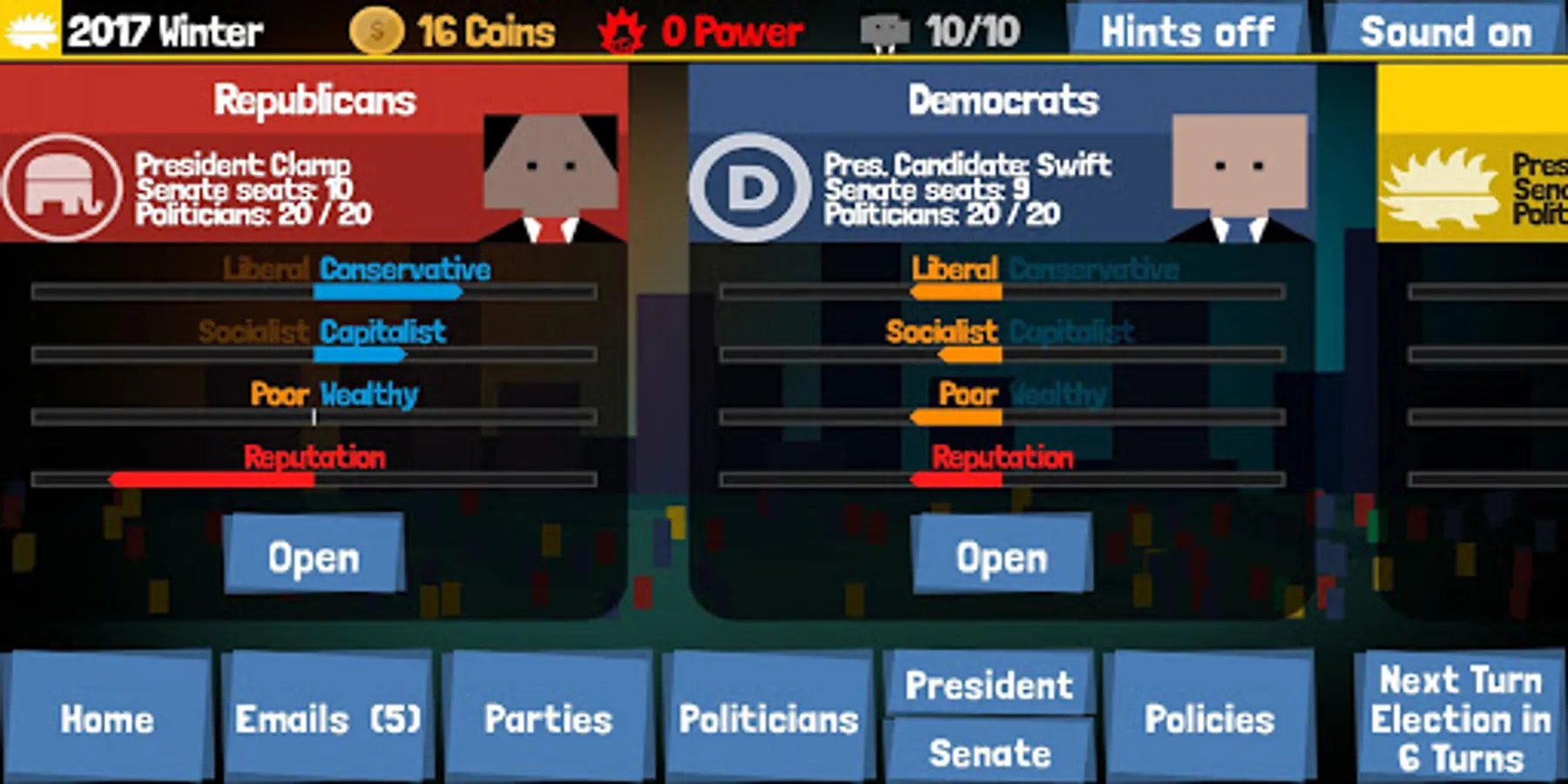 Take control of your own political party. Hire politicians and pick your presidential candidate, and lead them to victory in 2020!