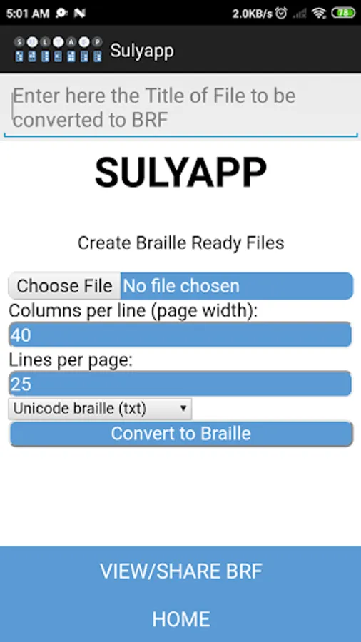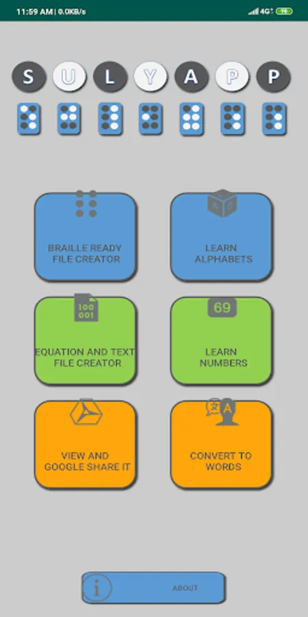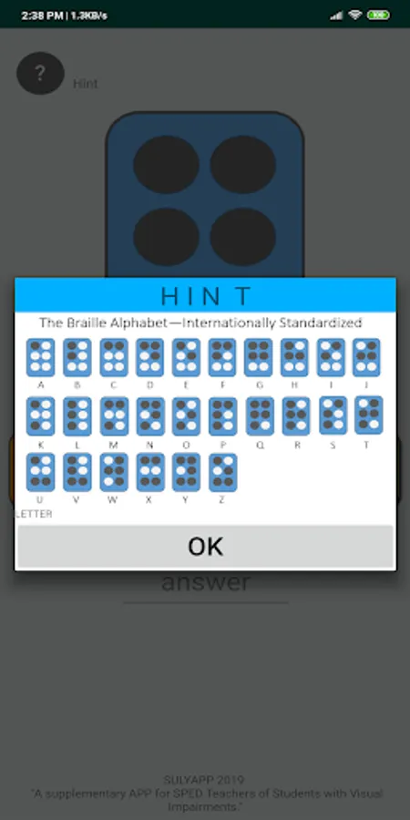 SULYAPP is a supplementary app specially made for SPED teachers teaching Visually Impaired students. Apart from its braille teaching module, the app enables SPED Educators to create a special file called Braille Ready Files or BRF compatible to a variety of teaching aids like Braille Refreshable Displays, Braille Printers and Braille computers.