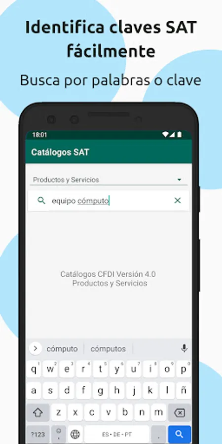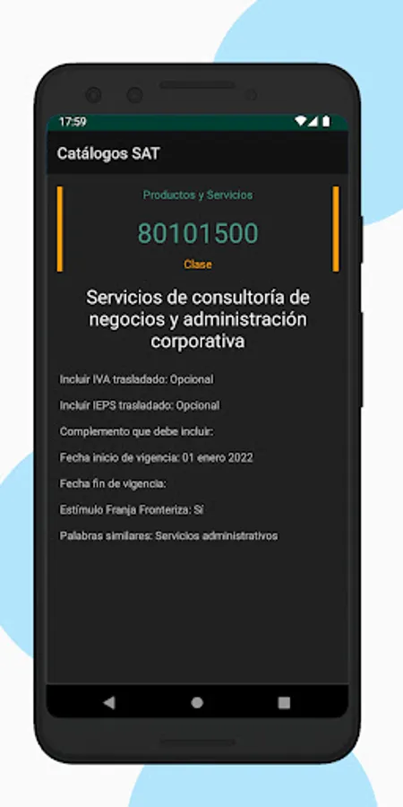 • Instantly identify the keys for products or services necessary when invoicing within the Mexican tax system.