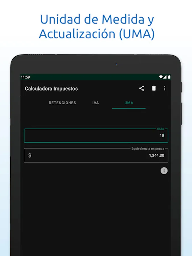 • Obtain immediately the amounts with value in pesos of taxes, fines, government procedures and various social benefits by entering the UMA number.
