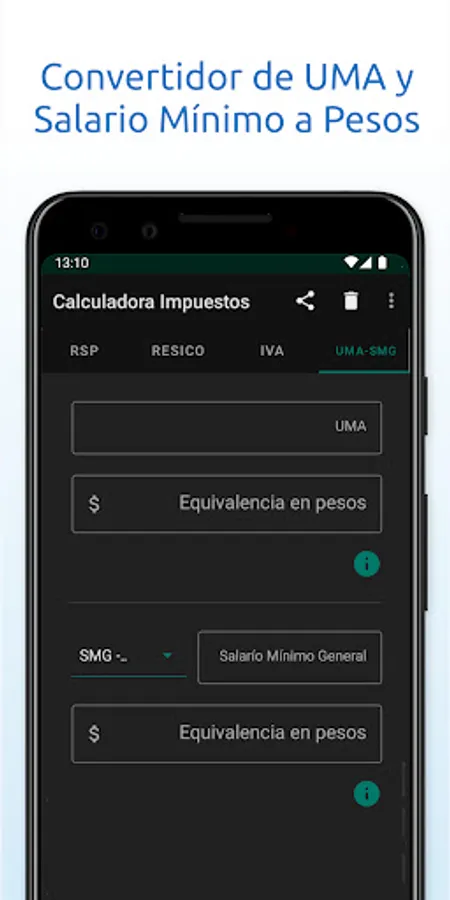 • Calculates the equivalence between General Minimum Wage and pesos or vice versa, includes Free Zone of the Northern Border ( ZLFN ).