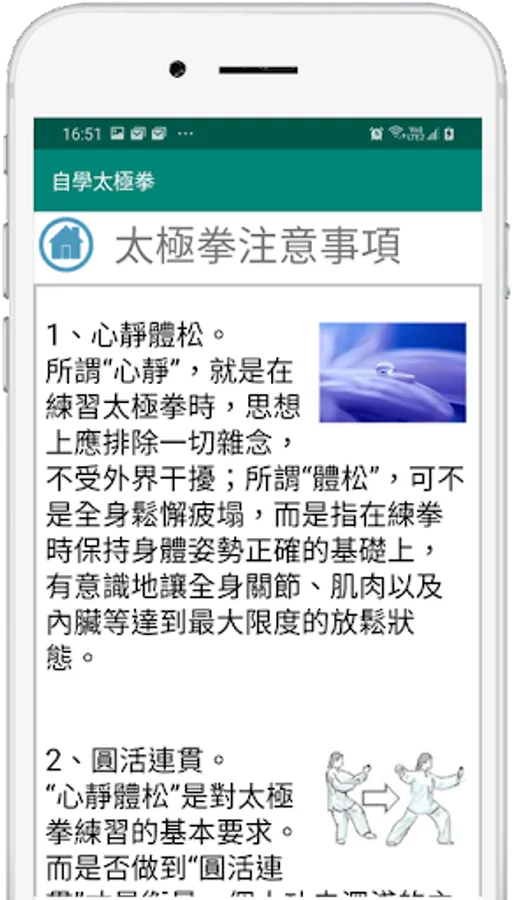 This program mainly allows users to understand Tai Chi and follow the guidelines of this course to learn the basic 24 style.