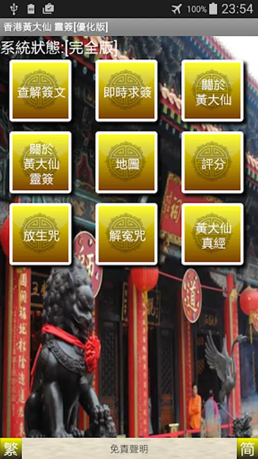 This software is "authentic Hong Kong Wong Tai Sin," according to Wong Tai Sin Ling signed signed this provides divination, check solution to sign the text and records. Using this software, the user can learn more about Sin Lingling sign mystery, also after the person to pray Wong Tai, Charles solution to sign the text itself. Wong Tai Sin Temple, Wong Tai Sin Temple Akamatsu full name or ocher Yuen Wong Tai Sin Temple is a famous temple in Hong Kong, many people will come here, to pray for the blessing.
