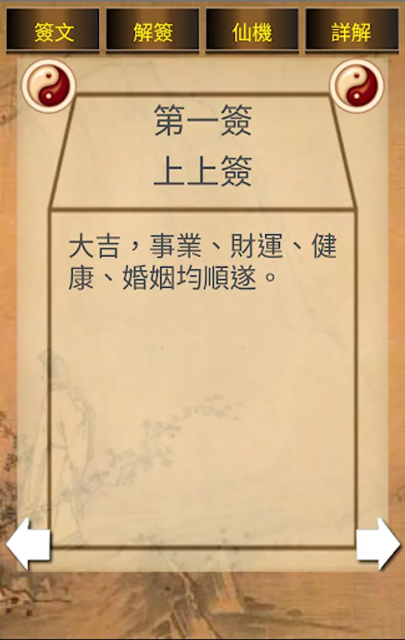 Zhuge God number, a total of three hundred eighty-four Yao, in accordance with the stroke to the Big Easy three hundred eighty-four accounted for a number of images of Yao, prophecy statement method of varying lengths, far-reaching implication of the idea soothsayer, a great the inspiration, especially those who are caught wandering lost in person, more of a clouds are cleared, feeling suddenly see a bright future. It is therefore judged as good and bad, decided advance and retreat, are selected compass good fortune.