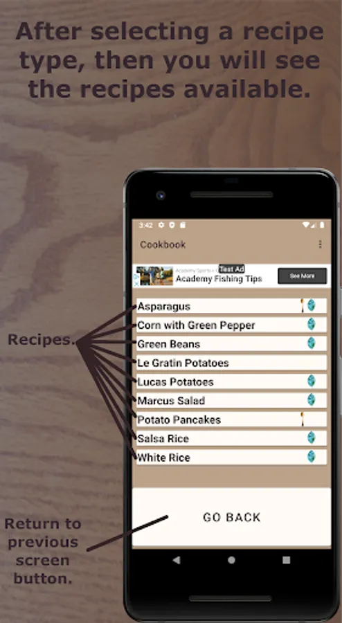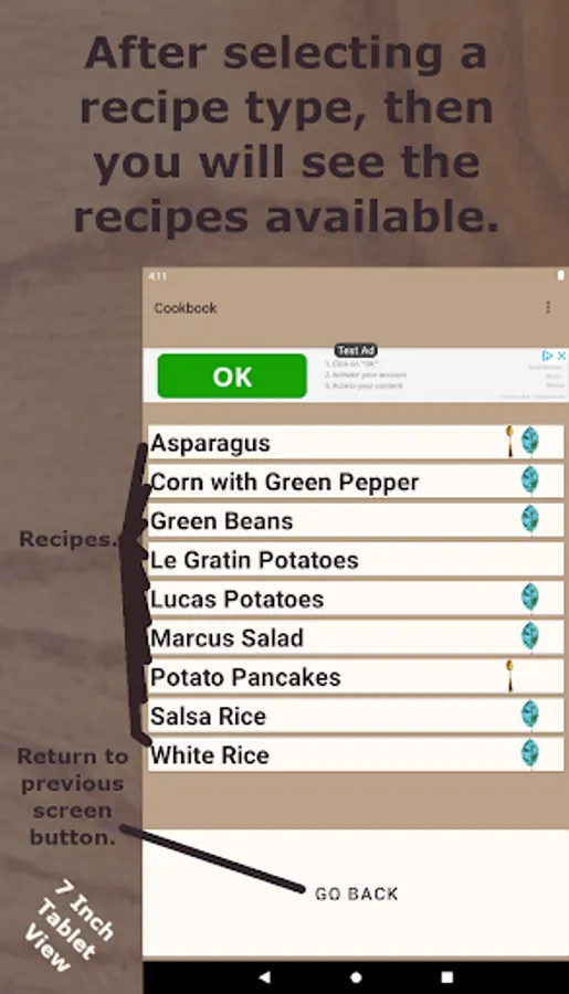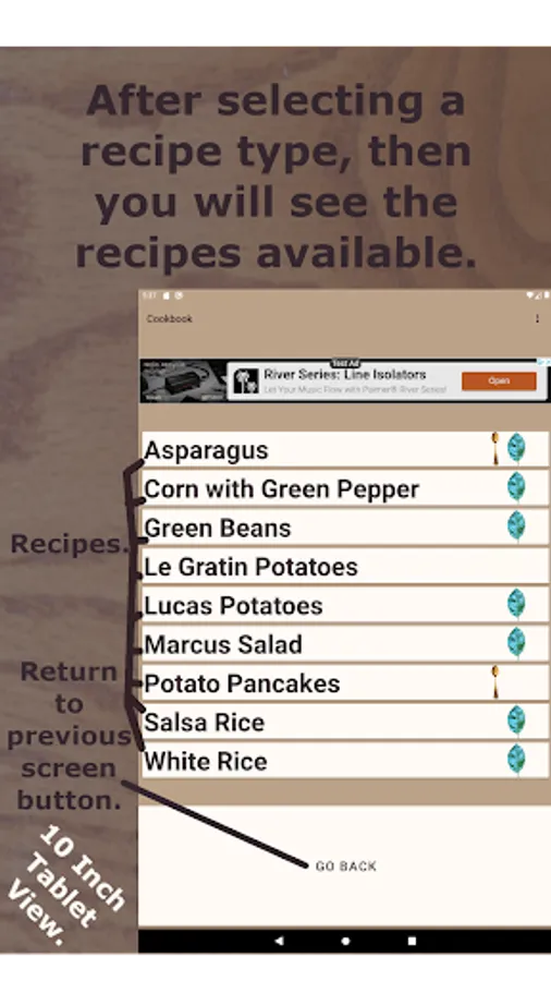 The list of recipes includes the following: