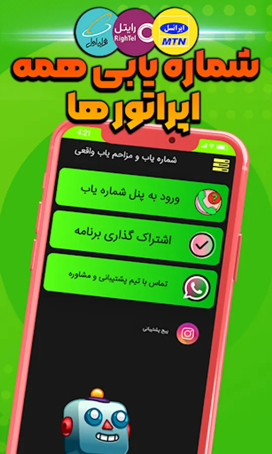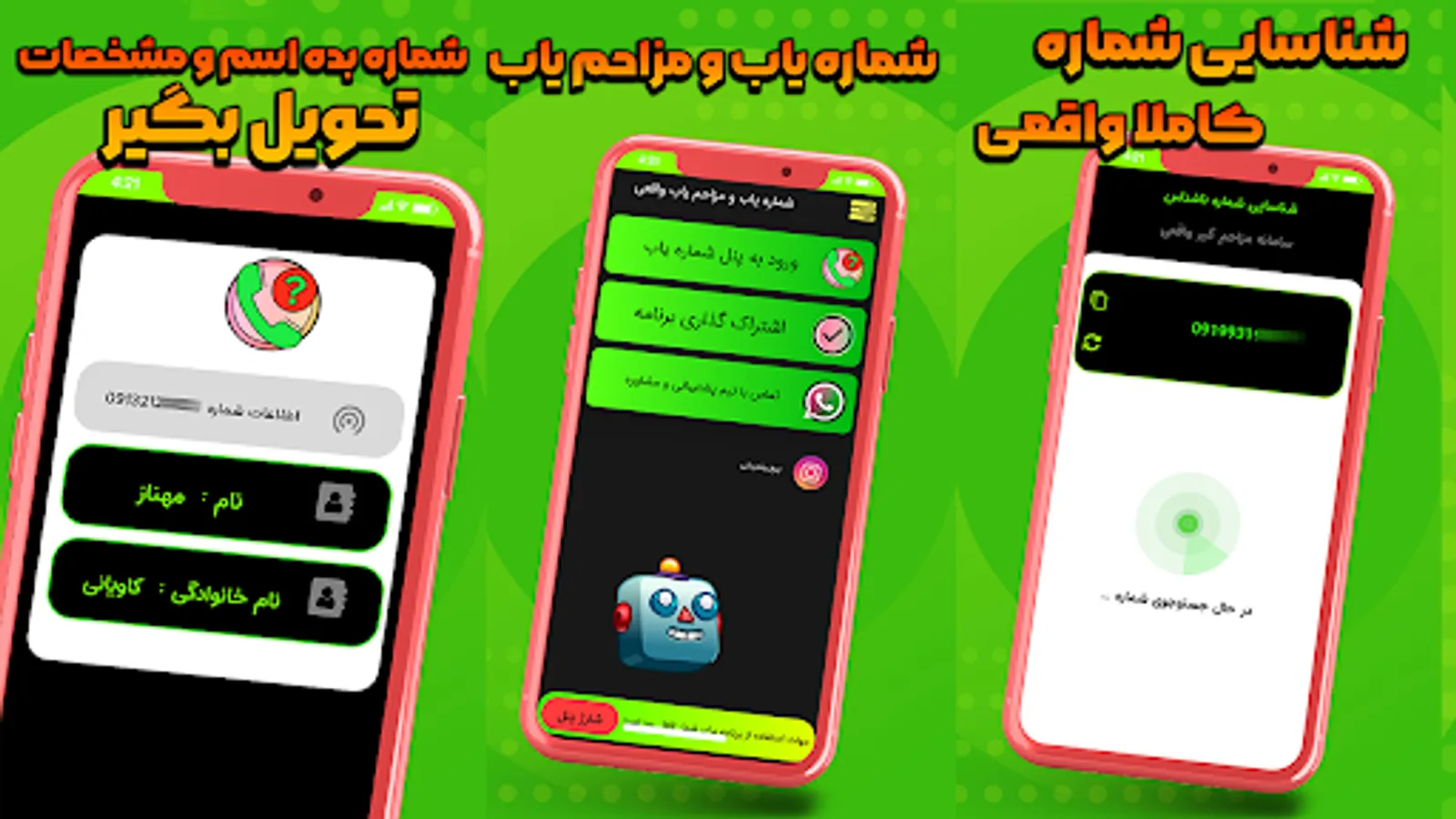 The number finder program finds the owner of the number among 60 million Iranian numbers and all mobile operators (Irancell, First Hamrah, Rightel, etc.)