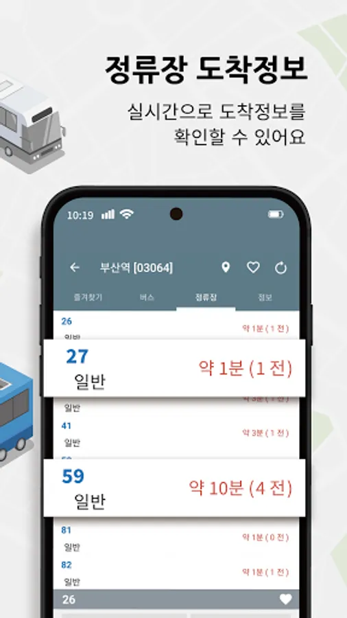 3. Check real-time arrival information for each bus stop and bus through favorites