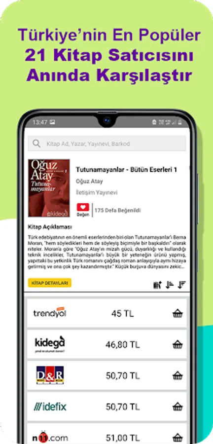 With the application, Idefix, Hepsiburada, D&R, Kitap Yurdu, Babil, Red Cat, Istanbul Kitapçısı, Kitap Sepeti, BKM Kitap, Kitapkoala, Trendyol, Kitap16, Pandora, Choose Book, Kidega, Buy Cheap Book, Amazon Kitap, Kitapkolik, Rare Book and You can get book prices from İlknokta.com sites.