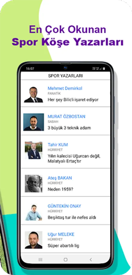 With the "Sports Writers" section, you can access the daily columns of the most read sports writers.