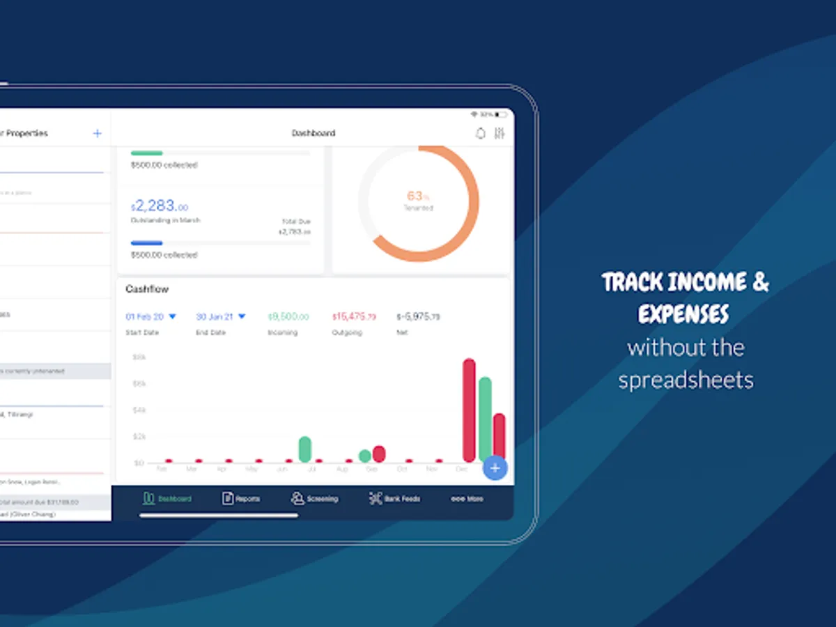 Track income and expenses for every property, collect rent online, create professional tax reports, screen and manage tenants, set reminders, and lots more. Our cloud platform is available on Mobile and Desktop.