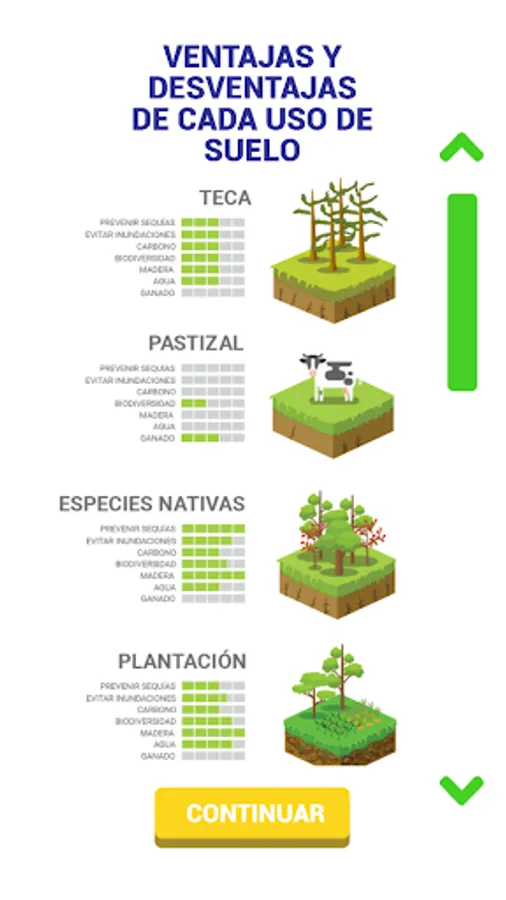 What will you do with your plot? Maybe let a mature forest grow, or perhaps establish a plantation of native tree species, or even grow coffee under the canopy of trees? Would you prefer to cut everything down and have a pasture full of cattle? Mix and match the different land uses available and discover the most sustainable combinations for the tropics and the environment. You can play with your cell phone, tablet or computer. Enjoy!