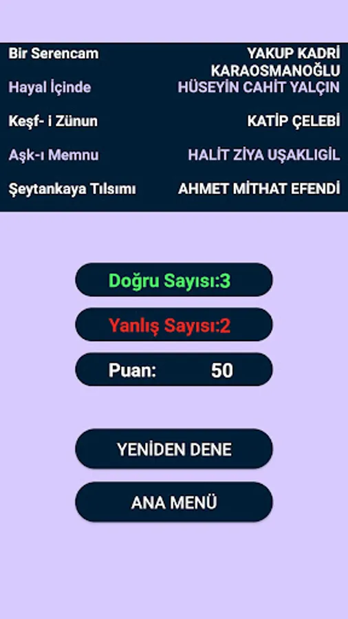 -If you wish; You can choose one of the categories such as Firsts, Epics, Folk Literature, Divan Literature, Tanzimat Literature, National Literature Period, Turkish Literature in the Republican Period and match the work-artist, or you can make the work-artist match in a mixed way.