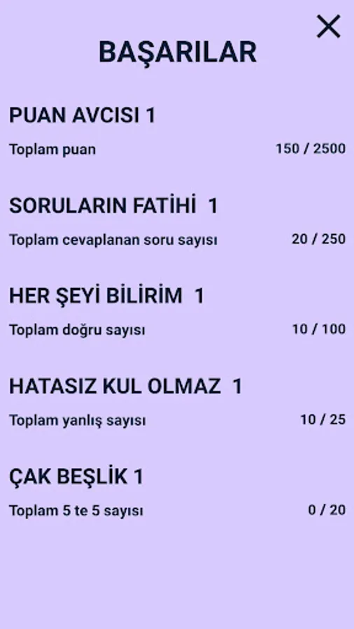 -You can follow your statistics by looking at the total correct, total incorrect, success percentage in the My Account section.