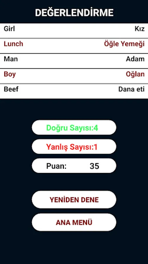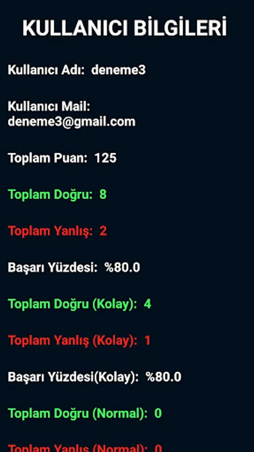 * You can find out how many correct and wrong you have done and your success percentage in the categories in the application.