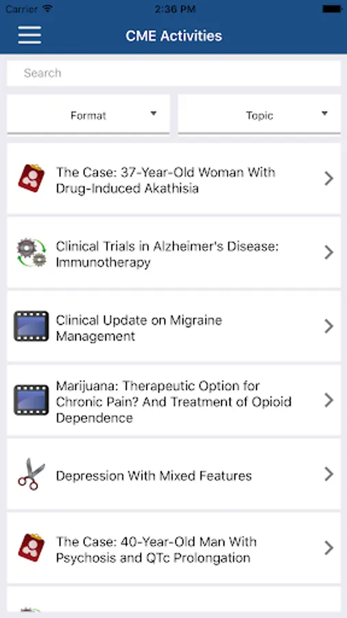 Our most popular online CME activities, now available in our newest app! Access animations, encore presentations, clinical cases, self-assessments, treatment guidelines and articles. Enhance your mental health care knowledge with cutting-edge education at your own pace, and conveniently meet all your CME requirements from your smartphone.