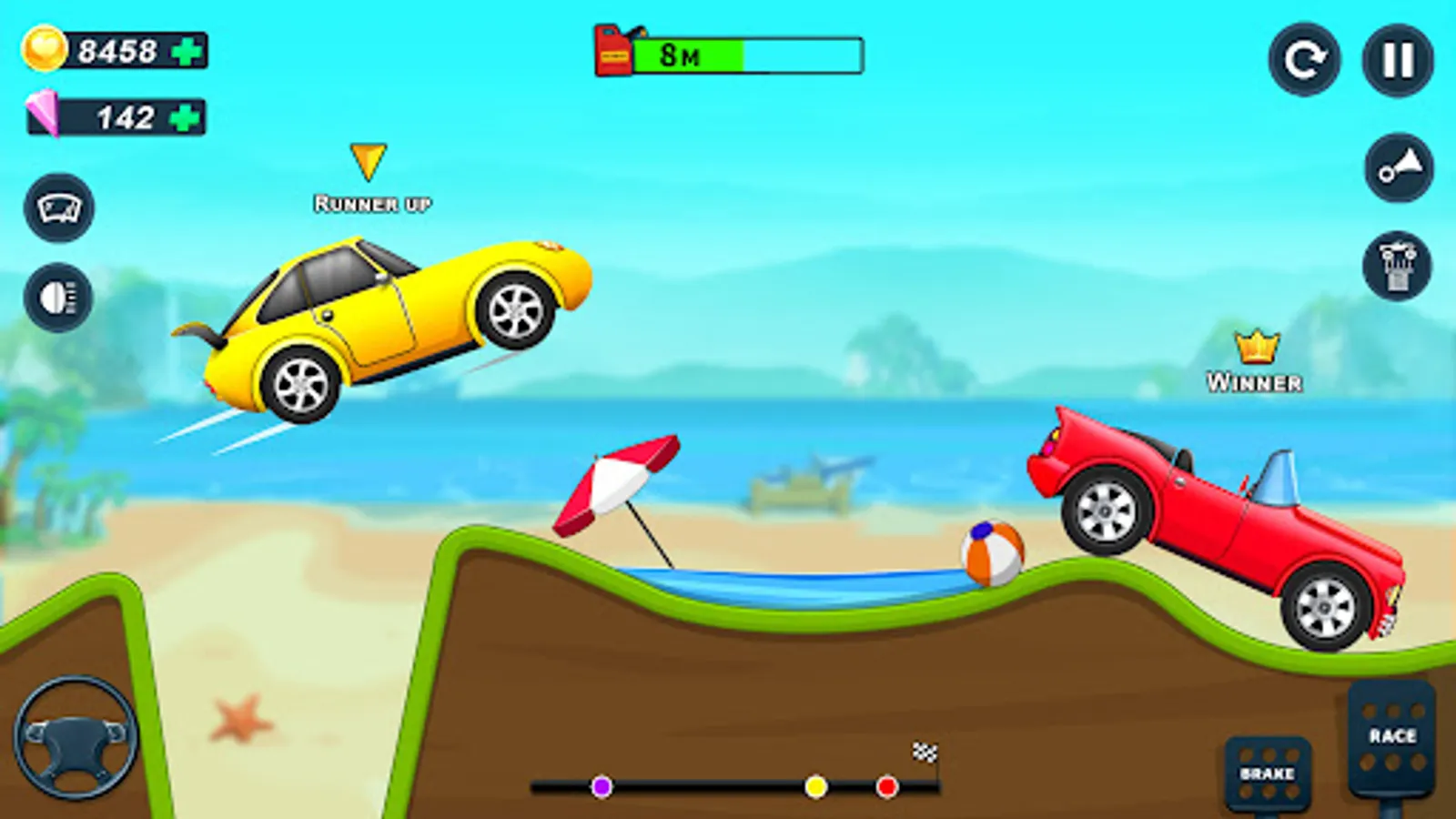 In this offroad road rash mountain racing, our little sports car racers can enjoy the bumpy track ride with their uphill car racing rivals. They can enjoy the best racing stunt games and enjoy car drifts and many more challenging car racing stunts in this car racing boys game.