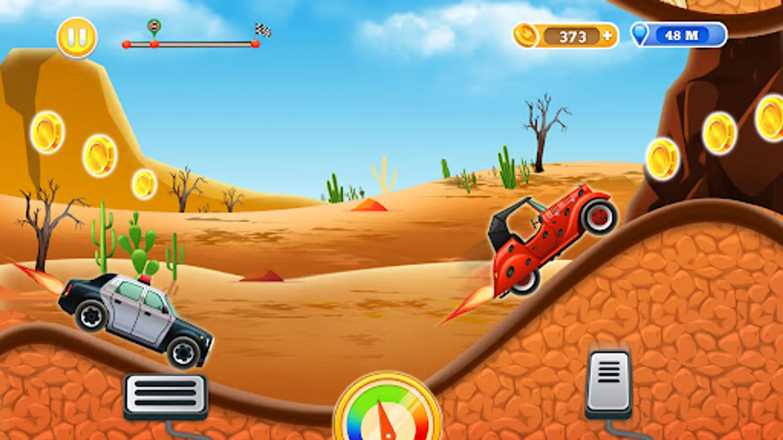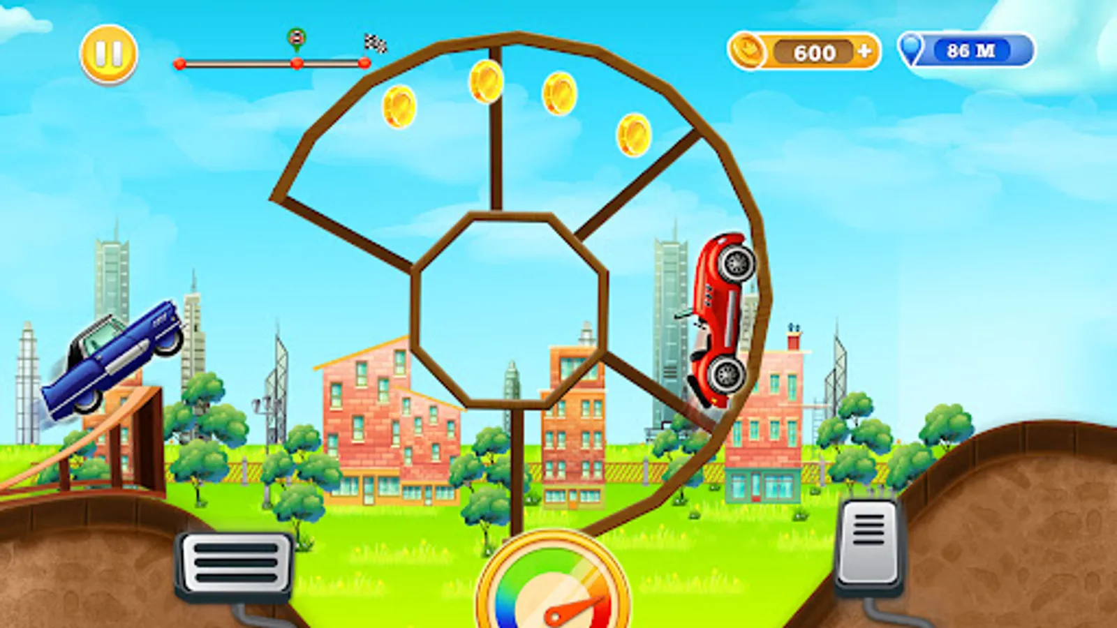 Continue collecting coins while driving on uphills for more fun in boys car games.