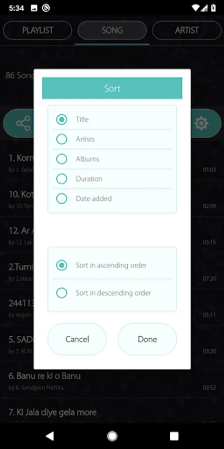 8. Filter song with title, artist, length, album, date with sorting